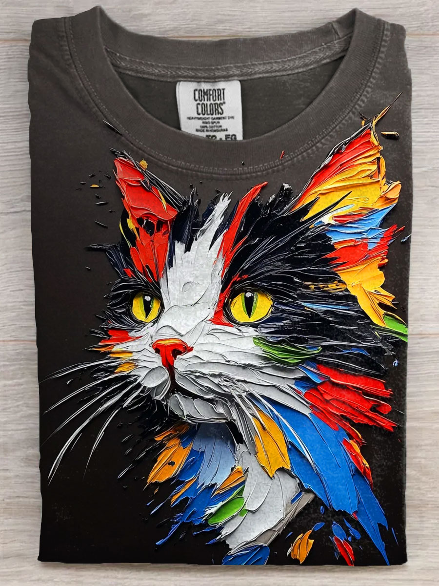 Unisex Cat Printed Vintage Fashion Loose Short Sleeve T-Shirt