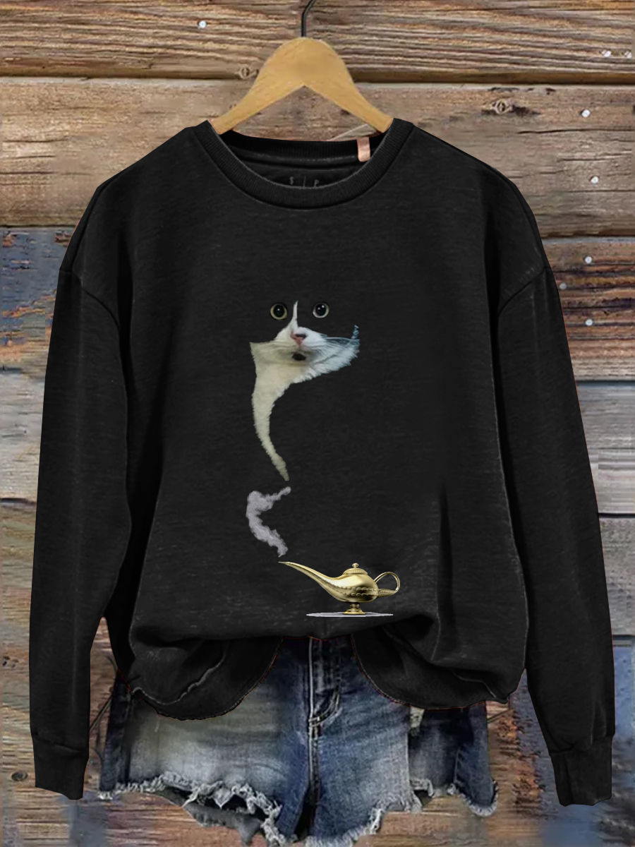 Vintage Cute Cat Art Print Casual Cotton Shirt